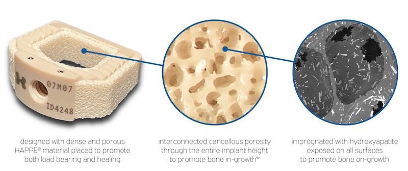 The INTEGRATE -C ACDF Fusion Device by HAPPE Orthro Spine is a novel patented HydroxyApatite Porous PolyEtheretherketone (HAPPE) spacer for use in the ACDF procedure. The spacer features interconnected porosity of the PEEK with HA impregnated into the PEEK material making the graft hydrophilic throughout.