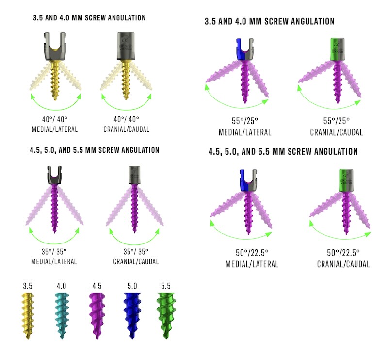 The Invictus OCT is a comprehensive occpito-cervico-thoracic fusion from occiput to T3. Screw options include: