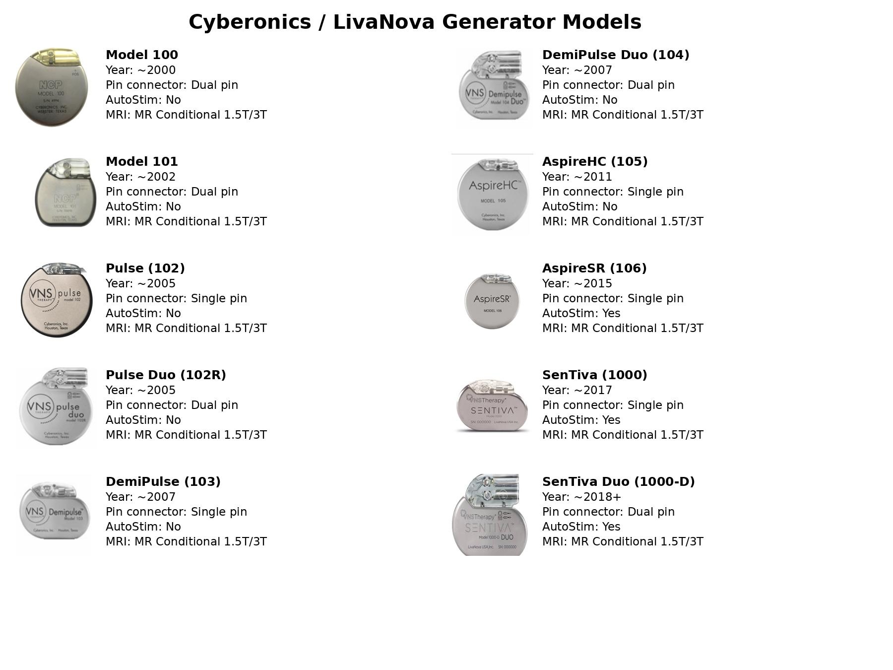 The LivaNova SenTiva M1000 vagal nerve stimulation generator is an implantable and programmable pulse generator for the treatment of refractory epilepsy/ The SenTiva M1000 comes as a single pin or dual pin generator. The small size makes is suitable for use in pediatric epilepsy cases. The SenTiva M1000 provides responsive stimulation to heart rate increases commonly associated with seizure, allows differential programming for day and night time as well as scheduled programming changes for ramp-up therapy.