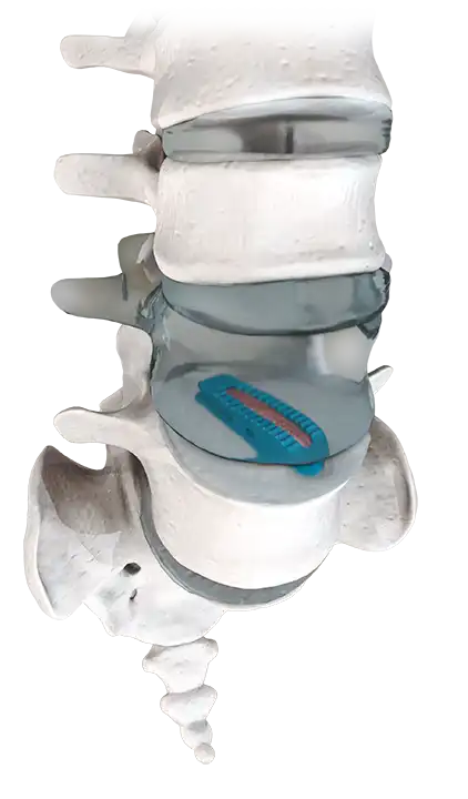 LumiVy-AS NanoVy Ti Coated PEEK Lumbar IBF ALIF spacer by VySpine is a standalone interbody fusion device intended for use at one or two contiguous levels in the lumbar spine. It comes in multiple shapes, sizes and angulations, all with anti-migration teeth on the superior and inferior surfaces. The components are made of PEEK-Optima and coated in NanoVy Ti, with embedded radiographic tantalum markers. The NanoVy Ti coating boasts increased osseointegration, reduction in fibrous layer, and resistance to delamination.