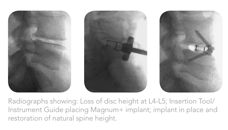 The Magnum+ Stand-Alone ALIF Spacer by Spinal Elements is a titanium coated PEEK interbody spacer using proprietary Ti-Bond surface treatment. Ti-Bond produces increased hydrophilic bonding with increased microstructure for increased surface area and bony adhesion. The spacer has integrated screw fixation with a locking ring to prevent screw backout