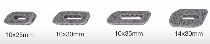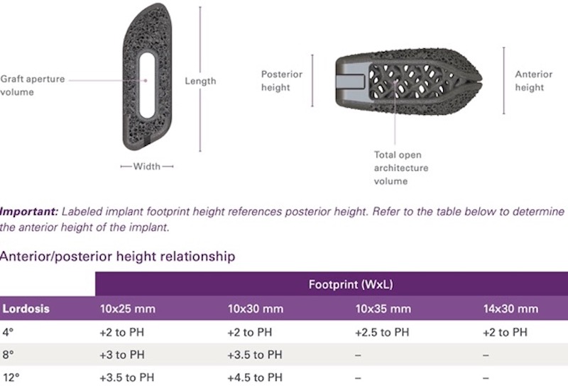 Fully porous 3D printed titanium implant designed to provide a favorable environment for bone in-growth for enhanced osseointegration, allowing for both strength and radiolucency.