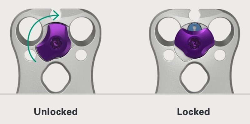 The fixed and variable screw options are held in place with an integrated locking cover which creates a smooth continuous profile and provides visual and tactile confirmation of the locking mechanism.