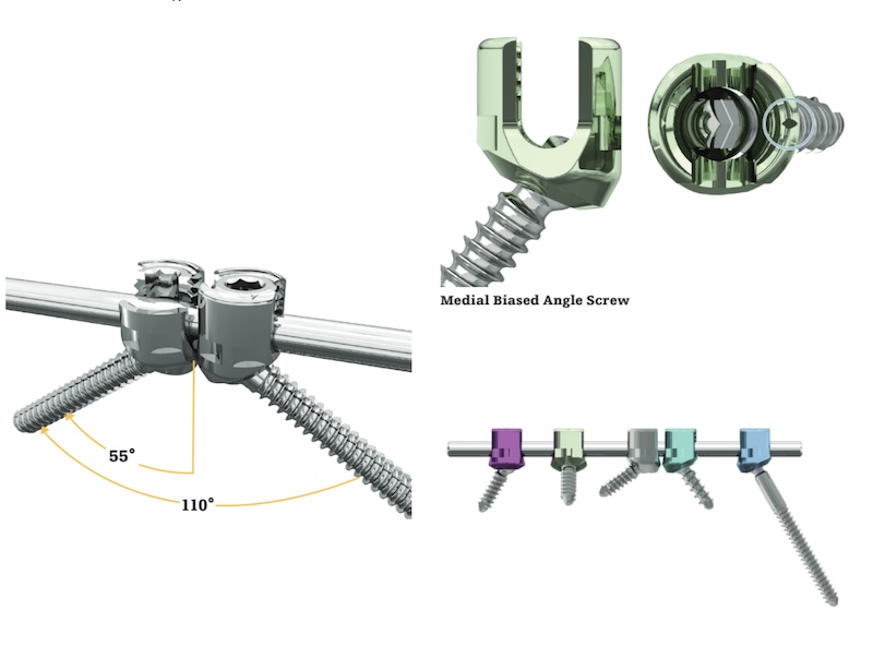 The Oasys Posterior Occipital-cervical fusion system features a favored angle screw with a 55 degree angulation and a biased screw size of 3.5mm to 4.0mm