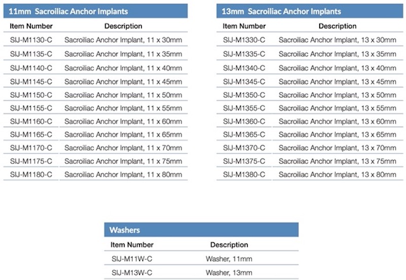 The Orion SI joint system by NeuroStructures/NuGen, is an open implant design which helps improve osseointegration and reduce radiographic signature in SI joint fusion procedures. The screws are cannulated, fully threaded with dual lead and double helix threads, and have distal cutting flutes. Optional washers available to aid in conforming to patient anatomy.