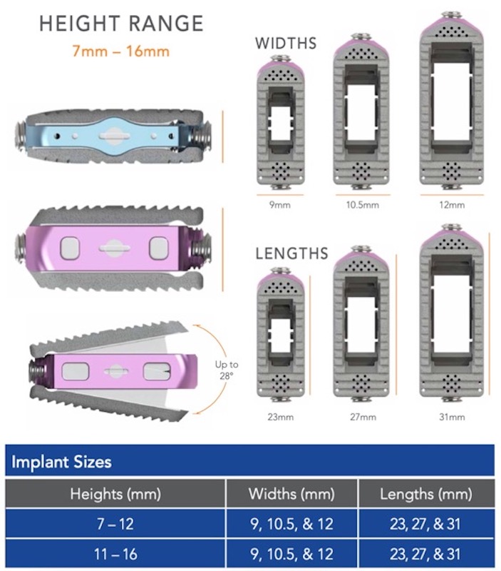 Expansion Type/Lordosis: Parallel expansion (Fixed Lordosis) , Anterior Only Expansion , Parallel Expansion (Progressive Lordosis)