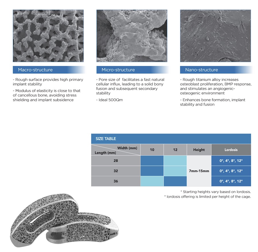 The Pyxis TLIF Interbody System by GS Medical is a 3D printed porous titanium curved TLIF spacer. It features a bulleted nose for easy insertion and a highly porous interior of improved bony ingrowth. The articulating inserter allows for easy placement in the anterior disc place.