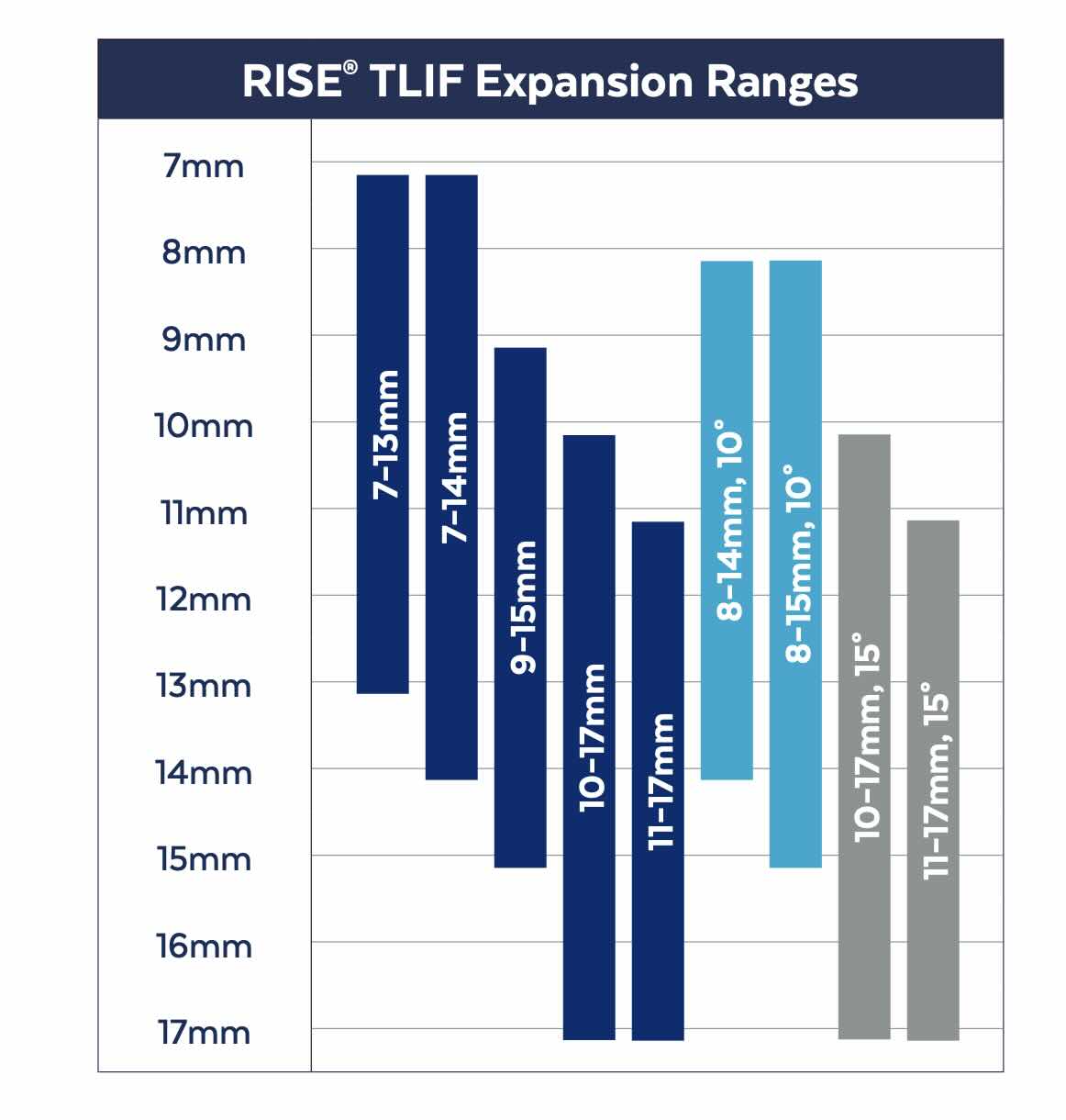 The RISE TLIF is an expandable titanium interbody spacer for use in the TLIF or PLIF procedure. IT comes in several footprint options and lordosis options. It features a 3D printed titanium endplates for improved bony ingrowth.