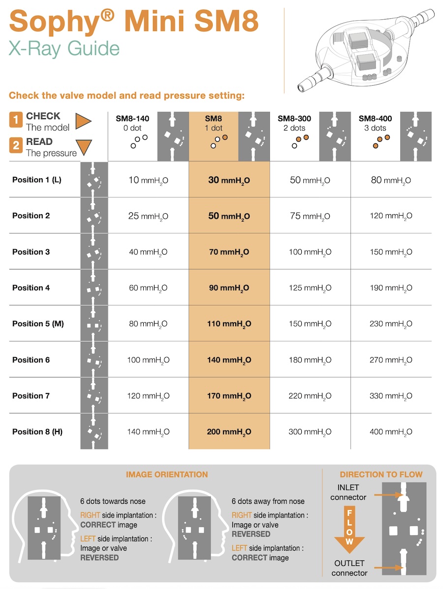 The Sophy Mini Hydrocephalus Shunt Valve by Sophysa is an adjustable valve with 8 pressure settings options. The Sophy Mini comes in 4 pressure rnage options to suit individual patient needs. The standard valve is the SM8 model but offers a low pressure and 2 high pressure range models. The valve is not MRI compatible and requires checking and reprogramming after MRI.