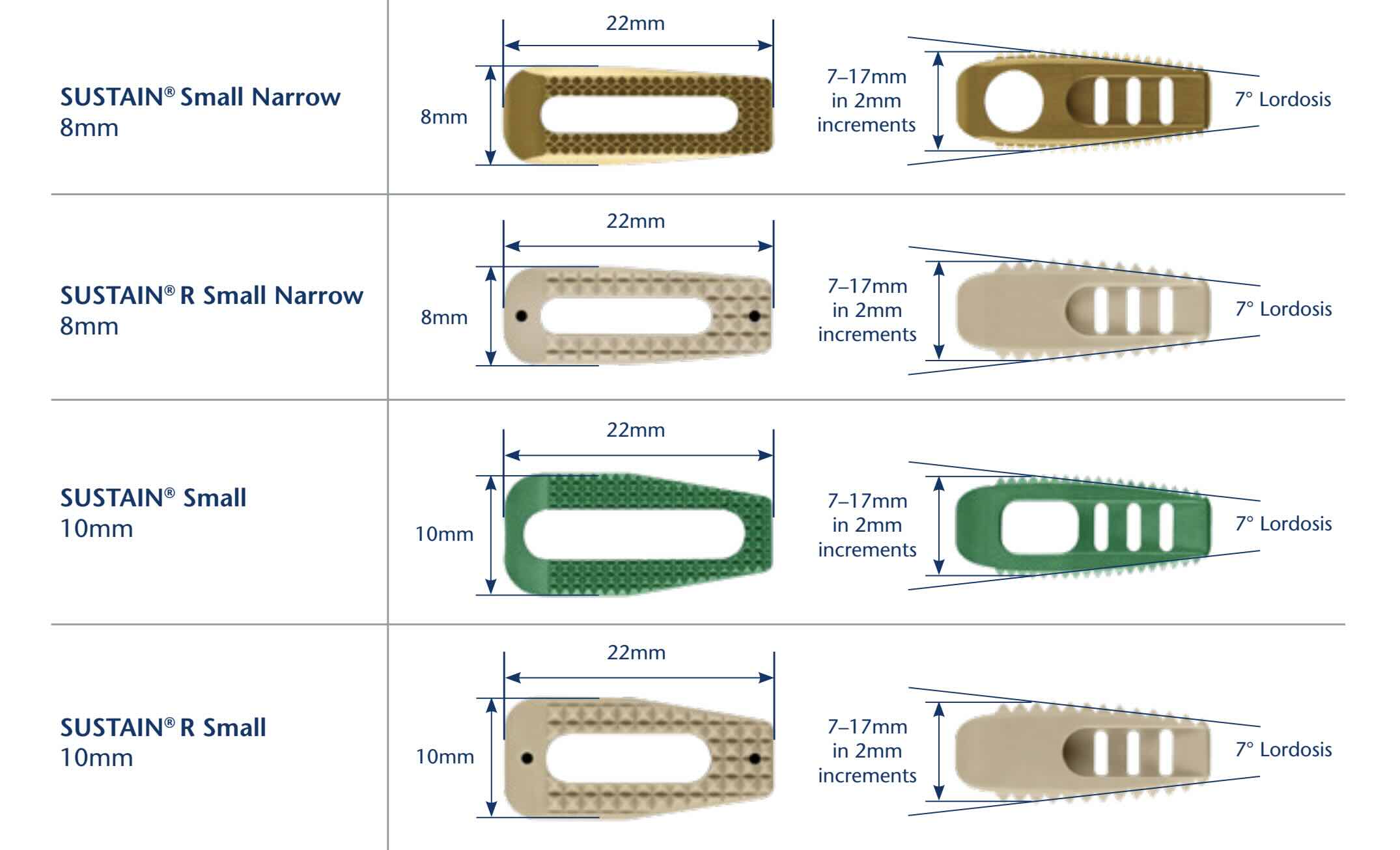 The SUSTAIN Small by Globus Medical is a PLIF spacer for the posterior lumbar approach available in radiolucent PEEK or Solid block titanium