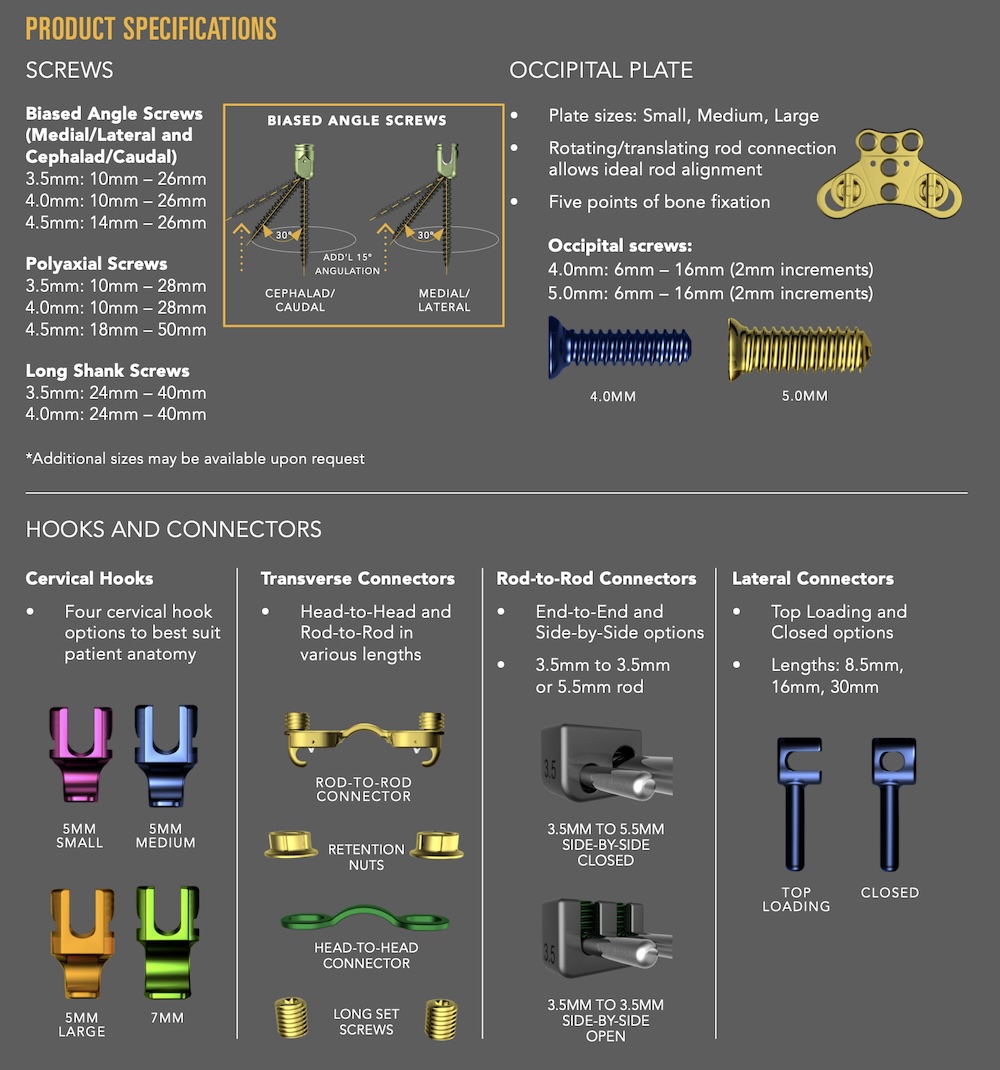 Features: High-Angulation Screw , Polyaxial Head , Favored Angle Head