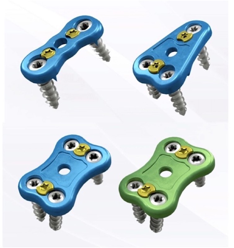 VyLam laminoplasty system by VySpine contains plates and screws in a variety of sizes and configurations fabricated from titanium alloy and indicated for use in laminoplasty of the lower cervical and upper thoracic spine. Plates are offered in 3-14 mm opening sizes and are available in five different designs: standard, single hook, double hook, inline double hook, and support hinge. Screw lengths range from 4-12 mm with diameters of 2.0 and 2.4 mm, in both self-taping and self-drilling options.