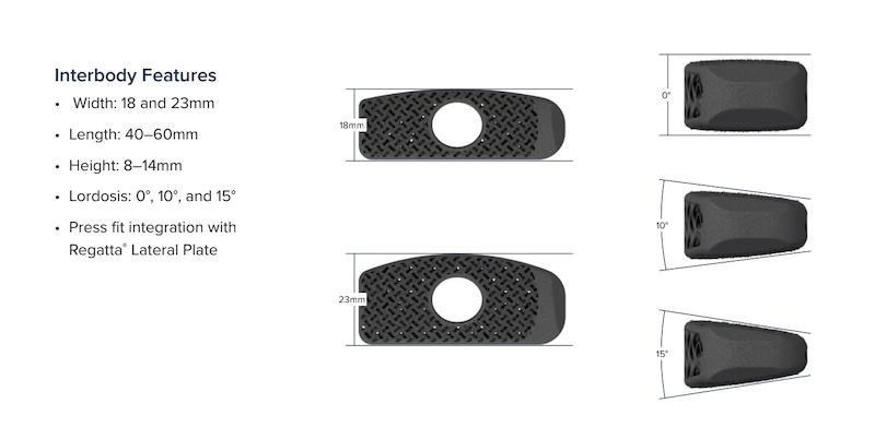 The WaveForm L is a 3D printed titanium lateral lumbar interbody spacer for use in the XLIF/DLIF/LLIF procedure. It can be mounted with the Regatta lateral lumbar plate for further fixation and stand-alone.