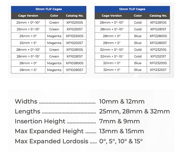 Expansion Type/Lordosis: Anterior Only Expansion , Parallel expansion (Fixed Lordosis) , Parallel Expansion (Progressive Lordosis)