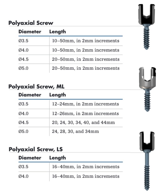 Screw Type: Occipital , Posterior Cervical (Lateral Mass) , Pedicle Screws (Cervico-Thoracic)
