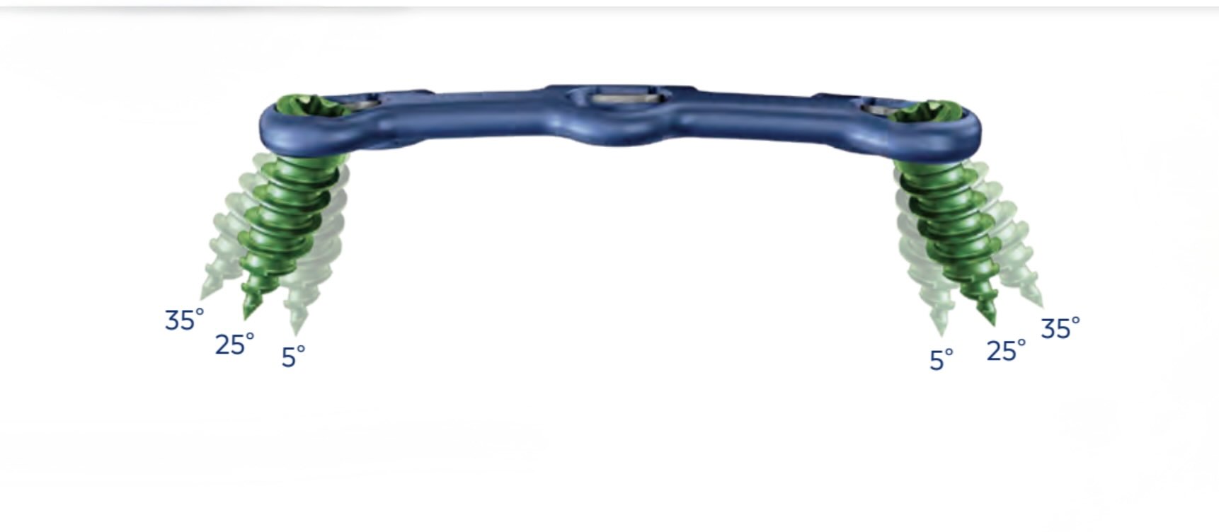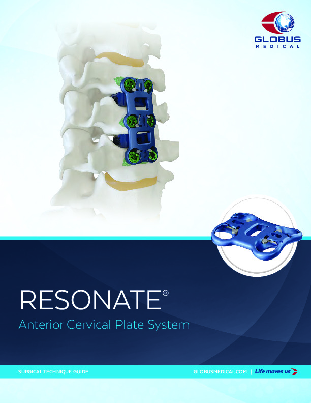 The RESONATE Anterior cervical plate for ACDF offers extreme angles of screw fixation up to 5 to 35 degrees. IT offers a thin design of 2.1mm thick and offers automatic screw locking. The extreme angle screw fixation allows minimal overlap of the plate onto the vertebral body.