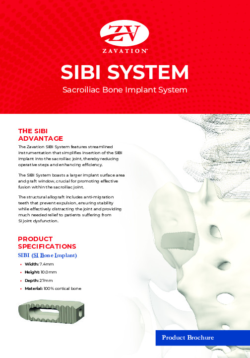 The SIBI- Sacro-iliac Bone Implant is an allograft spacer machined from cortical bone that is intended for a posterior approach for implant into the SI Joint.