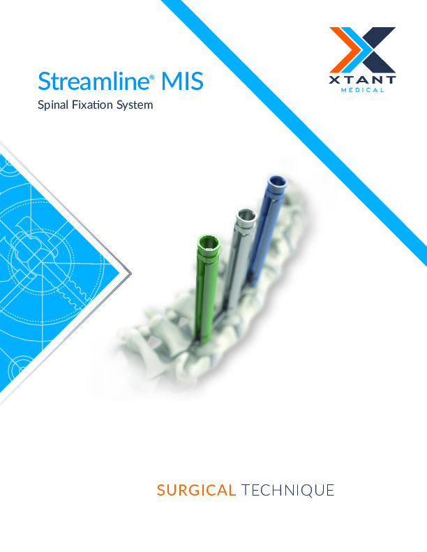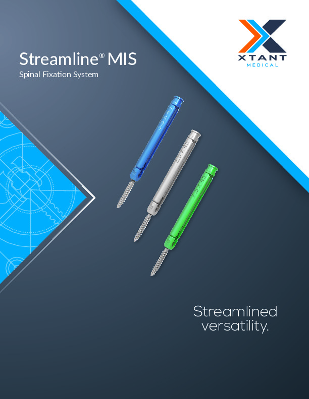 The Streamline MIS spinal fixation system by Xtant Medical allows a rigid construct to be created in the thoracolumbar spine via a percutaneous or mini-open posterior approach. The system offers dual lead thread and cannulated screws, multiple instrumentation options for screw and rod insertion, robust reduction instrumentation allowing for up to 30mm controlled reduction, and powerful compression/distraction at the vertebral bodies.