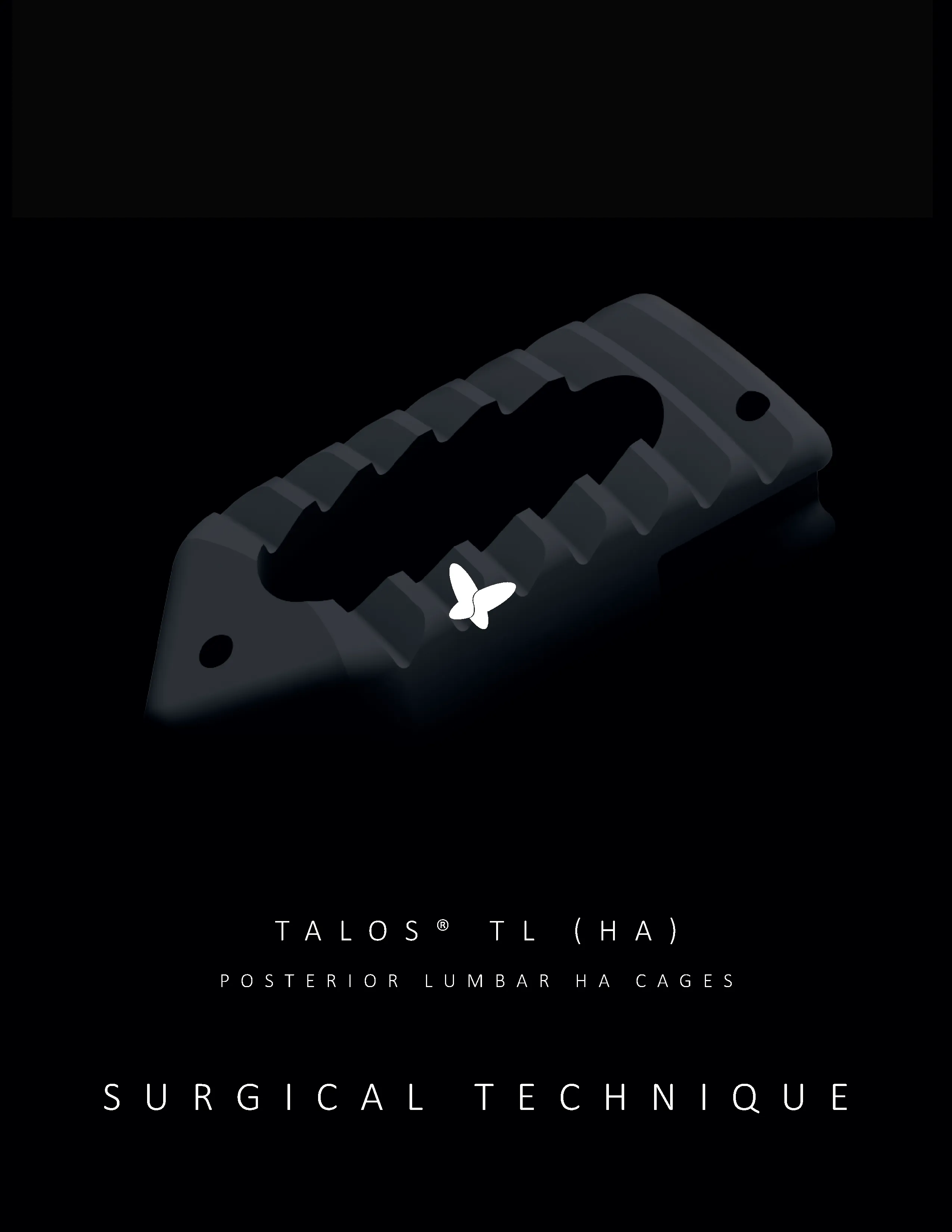 The Talos TL by Spineart is an HA (Hydroxyapatite) integrated PEEK spacer intended for use in the posterior oblique TLIF or bilateral PLIF procedure. It features a biconvex design with HA integrated into the PEEK making it hydrophilic and osteoconductive.