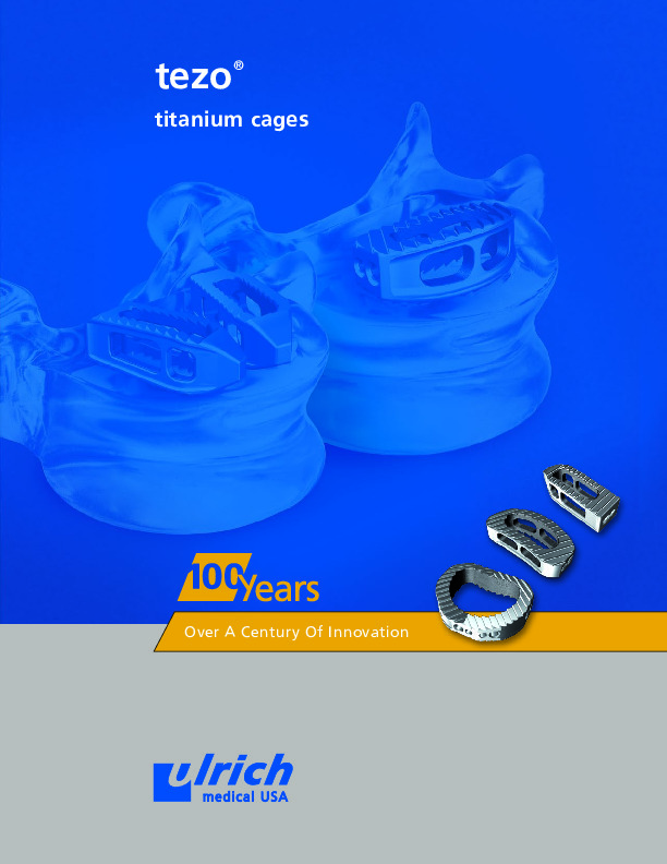 The tezo-A is a 3D printed porous titanium ALIF cage by Ulrich Medical USA are designed for lumbosacral interbody fusion (L2-S1). The tees family comes in three cage types: tezo-T, tezo-P, and tezo-A which are created specifically for TLIF, PLIF, and ALIF approaches (can be placed via lateral approach as well). The ALIF spacer is a 3D printed Spacer with roughened endplates for increased bony ingrowth.