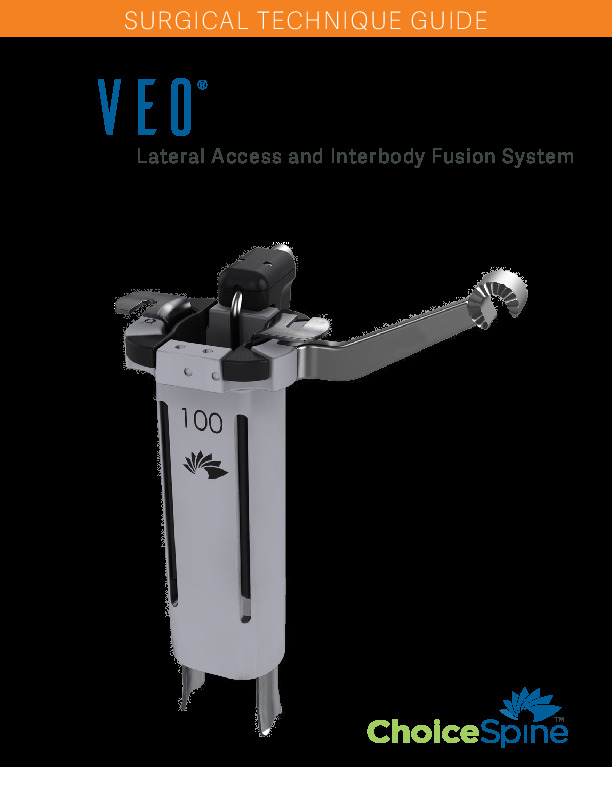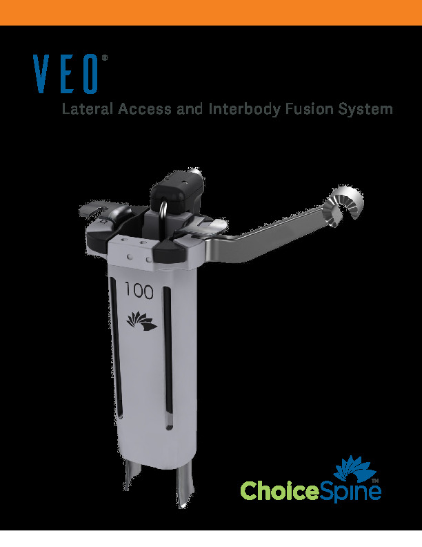 The VEO PEEK Lateral Lumbar Interbody Fusion System by Choice Spine is a radiolucent PEEK Interbody spacer for use in the direct lateral retroperitoneal approach. It features a tapered nose and large graft widows.
