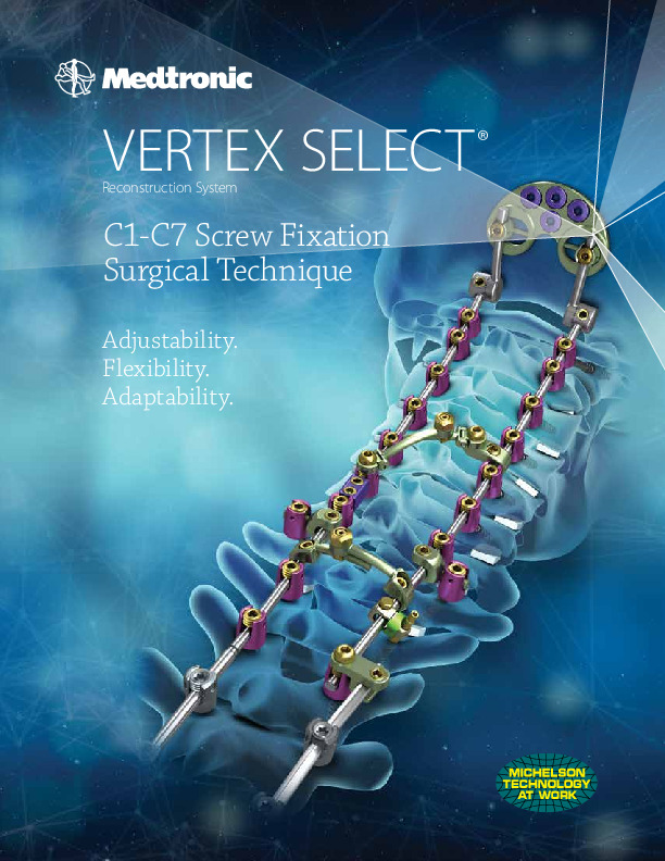 The VERTEX OCT is a posterior Occipital-Cervical-Thoracic fusion system by Medtronic. This utilizes a hex head cap and an occipital plate with translating and rotating heads for maximal capture of the rod.