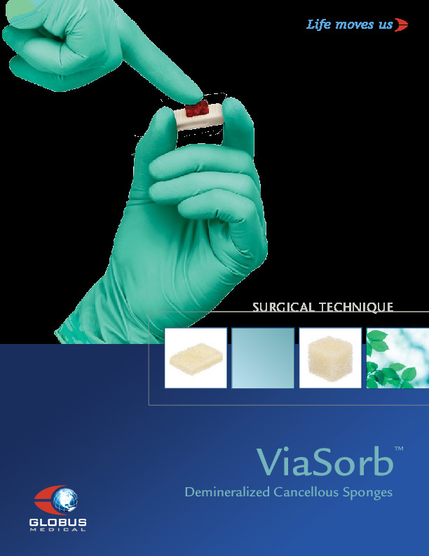 ViaSorb by Globus Medical is a demineralized cancellous sponge available in both strips and cubes. The porous structure allows absorption from bone marrow aspirate