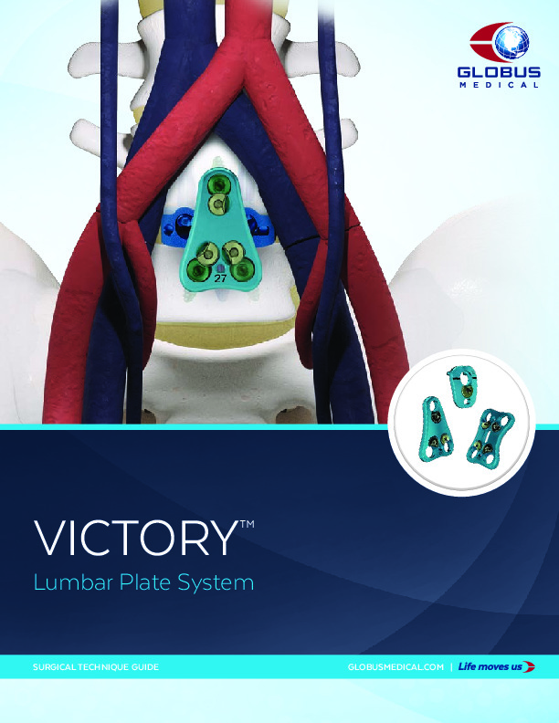 The VICTORY Anterior Lumbar plate by Globus Medical is a Single level anterior plate solution for the lumbar spine ALIF procedure.