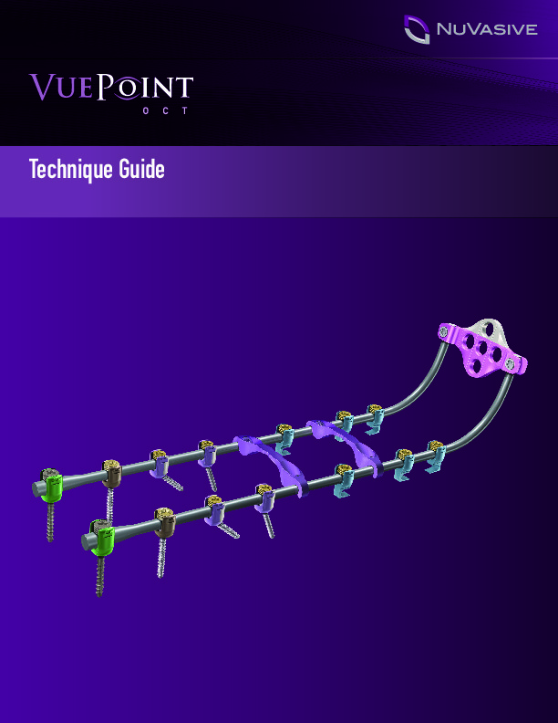The VuePoint OCT System is a complete low-profile occipital, cervical, and thoracic system which also seamlessly integrates into thoracolumbar systems to allow applications from skull to sacrum.