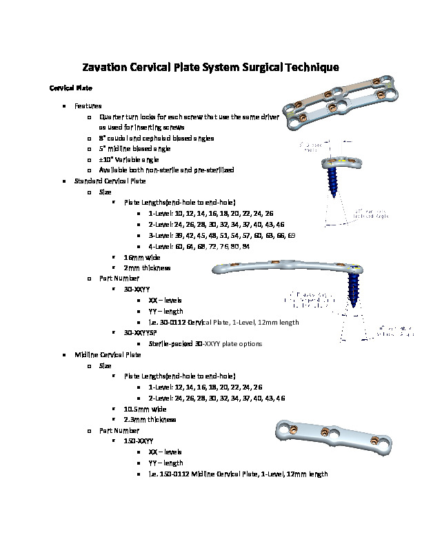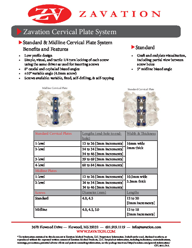 The Cervical Plating system by Zavation is an anterior plate for use in the ACDF procedure. It features a single level to 4 level plate options.