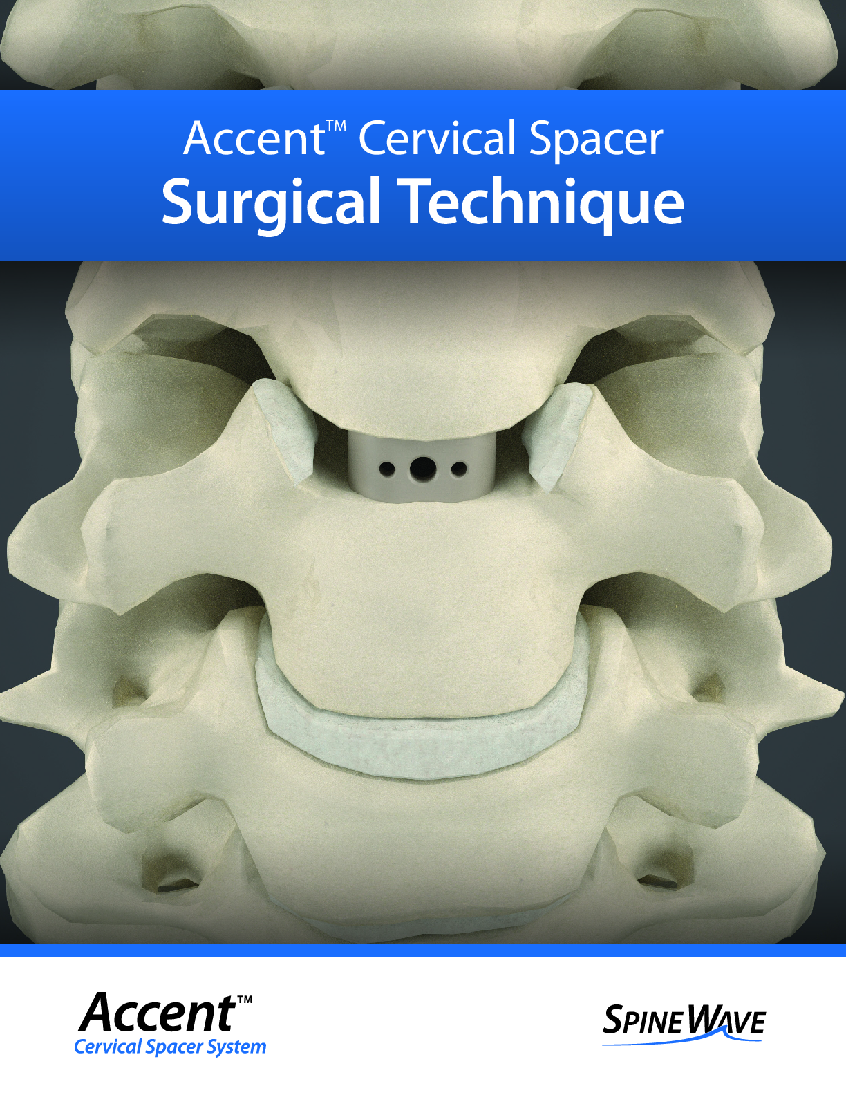Accent by Spine Wave is an anterior cervical interbody implant made of PEEK, designed for anterior cervical interbody fusion to be used with supplemental fixation and bone graft. It has large central graft window and incorporated within the device are three tantalum pins to enhance visualization and easily identify implant position. The inserter offers three points of engagement with the spacer providing secure, controlled insertion.