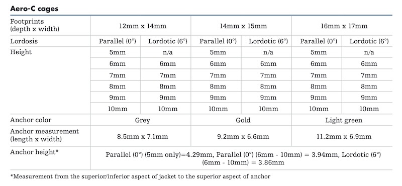 The Aero-C is a novel PEEK and titanium cervical interbody spacer that utilizes Aerofoil compression technology where the anchors produce inward compressive force to promote fusion.