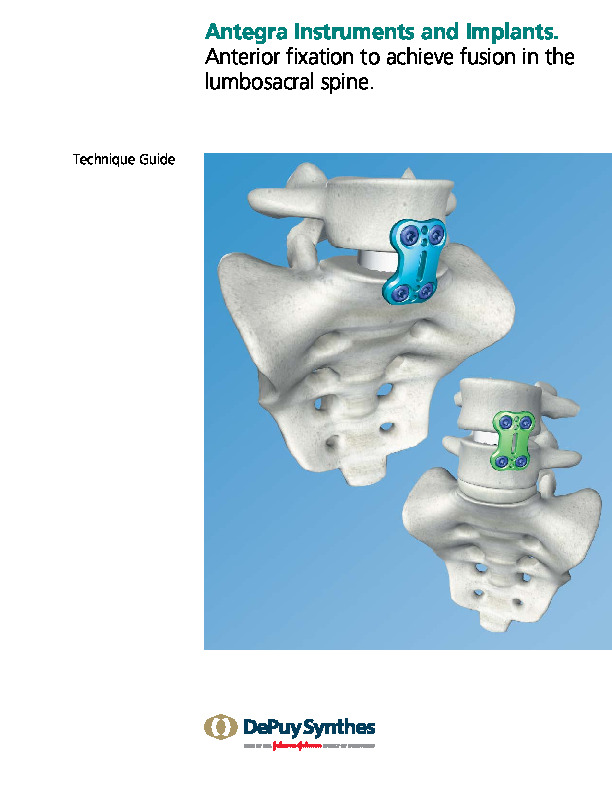 The Antegra Anterior Lumbar Plating System by J&J Medtech Depuy-Synthes for use in the L1-S1 levels and for use with interbody cages.