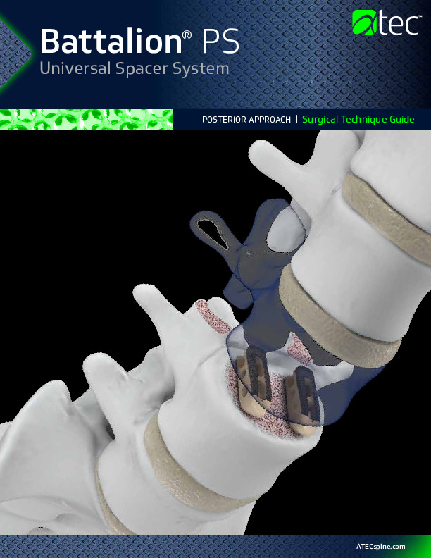 The Battalion -PS is a PLIF spacer by ATec and features a Titanium coated PEEK spacer for bilateral implantation or single oblique. The titanium coating provides improved surface area for bony ingrowth.