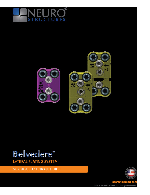 Belvedere is a thoracolumbar lateral plating system by NeuroStructures/NuGen that provides anatomically contoured low profile plates at assorted lengths, and available in adjustable (dynamic) and fixed options. There is a one-step locking mechanism at each level and the screw options include cortical, bi-cortical, and cannulated.