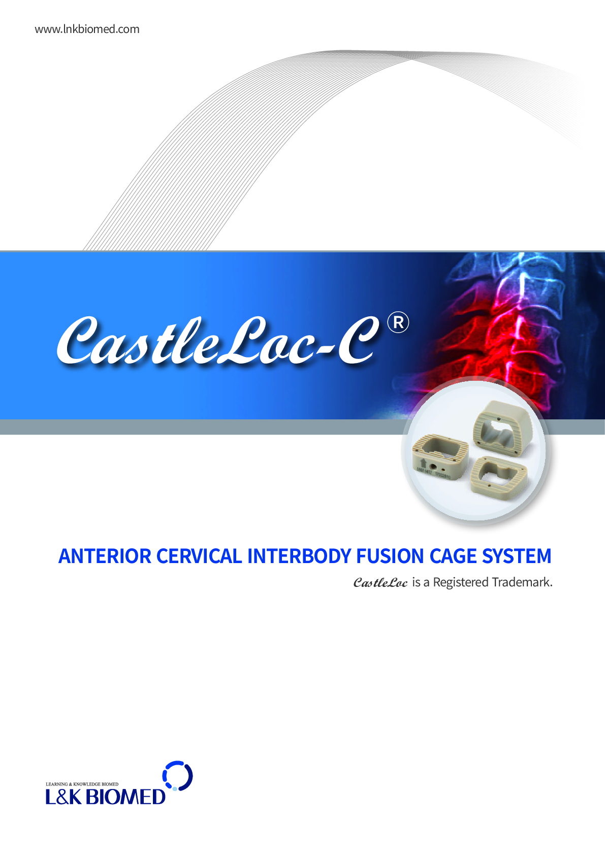 CastleLoc-C by Aegis Meditech is an anterior cervical interbody cage made of PEEK. Integrated tantalum markers allow for radiographic visualization. The large central graft window allows for utilization of ample bone graft to assist with fusion.