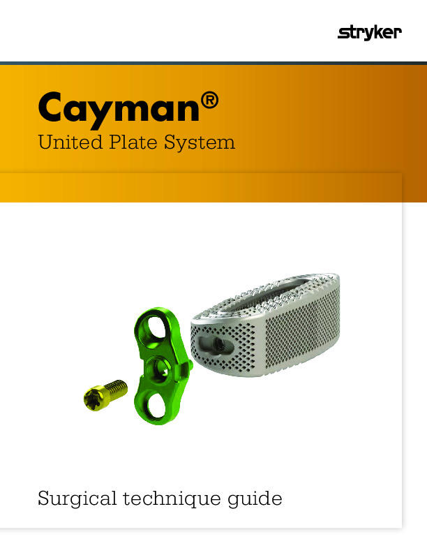 The Cayman Lateral Lumbar plating system is designed to be used in the direct lateral transpsoas retroperitoneal approach and can be used with the Cascadia 3D lateral cage