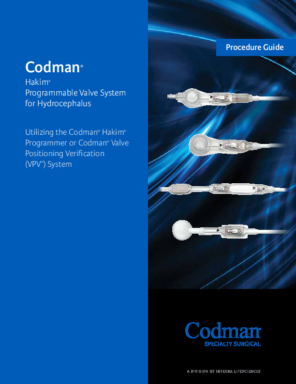 The Codman Hakim Programmable valve by Integra Lifesciences is a ball-spring ball-in-cone design valve for the treatment of hydrocephalus. The Codman Hakim ventriculoperitoneal shunt valve features an 18 step pressure options from 30 to 200 mm H2O in 10 mm H2O increments. The valve is adjusted by a magnetic programmer and requires post-adjustment Xray to confirm position. The Codman Hakim valve is not MRI compatible and should be checked after exposure to MRI.