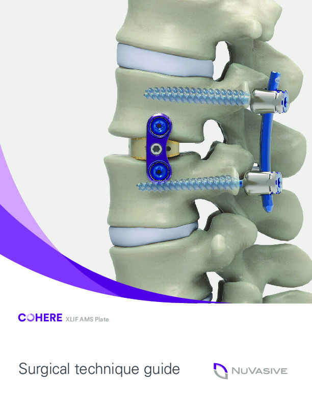 The Cohere XLIF AMS Plate was created to provide lateral stability for the Cohere XLIF PEEK interbody spacer. The plate is available in single and dual-sided options, with instrumentation that allows the plate to be placed before or after insertion of the Cohere XLIF spacer. It is a low-profile, anti-migration device designed to provide stability, in multi-stage procedures or as standalone fixation.
