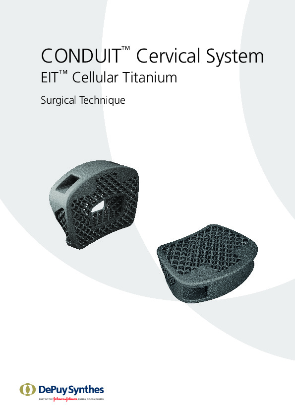 The CONDUIT EIT Cellular ACDF spacer by DePuy-Synthes is a 3D printed titanium with surface roughened microstructure that improves cellular adherence and improved bony ingrowth. The cellular appearance of the lattice structure allow for in-growth of bone for faster fusion.