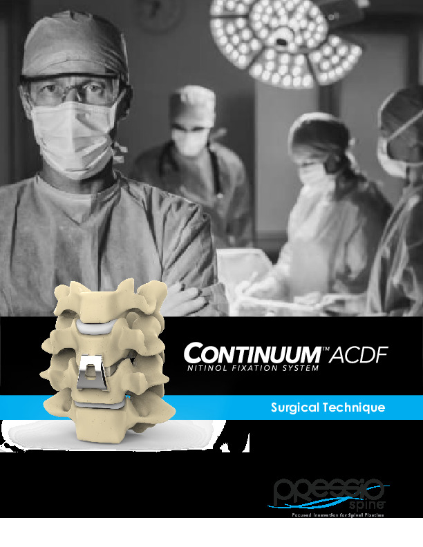 The CONTINUUM Cervical Compression Plate by Pressio Spine is a unique anterior cervical plate designed for single level fixation with disposable single-use inserter. It features monolithic shape memory nickel-titanium alloy to provide constant compression across the disc place taking advantage of wolfs law.