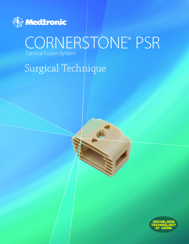 The Cornerstone PSR by Medtronic is an Anterior cervical PEEK interbody spacer for use in the ACDF procedure in conjunction with supplemental plate fixation.