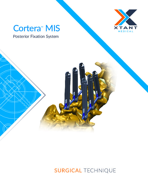 The Cortera Posterior Thoracolumbar Spinal fixation system by XTANT Medical is a comprehensive pedicle screw system utilizing a 5.5/6.0 mm rod system. Cortera features a dual-lead and quad-lead (Cortico-cancellous) Screws.