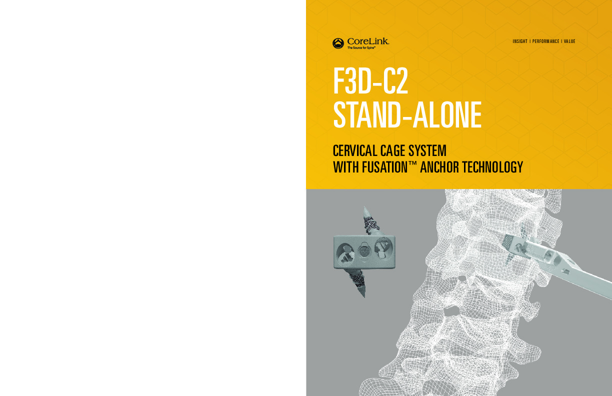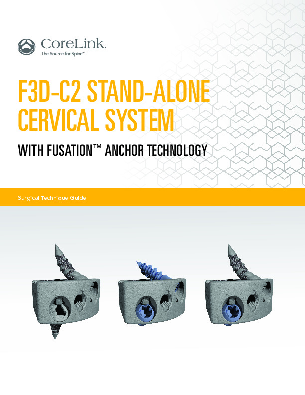 The F3D-C2 Stand alone ACDF spacer with Fustian Anchor technology is composed of a 3D printed titanium spacer and utilizes flexible screw or 3D printed titanium Fustian Anchor.