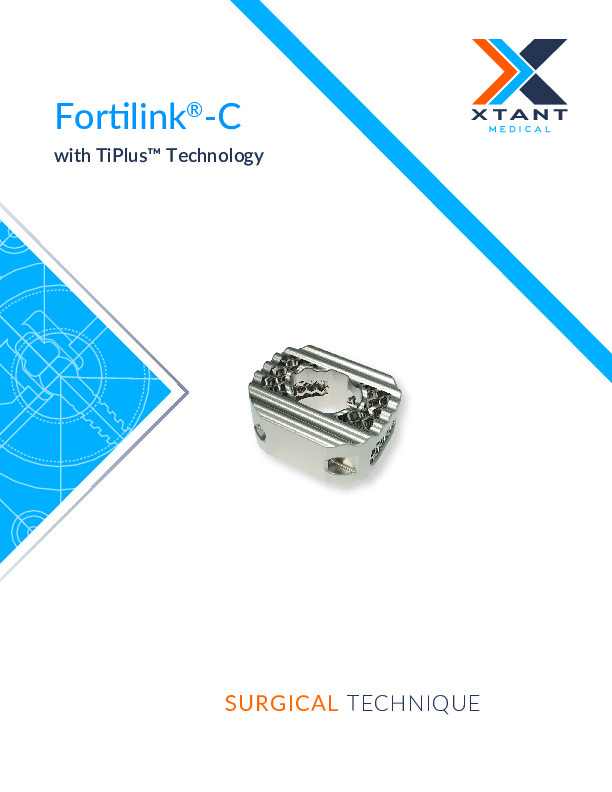 The Fortilink -C TiPlus with 3D technology by XTANT Medical (originally by RTI/Surgalign). Fortilink -C is a 3D printed titanium in a mesh internal architecture that allows for bony ingrowth and increased cellular attachment.