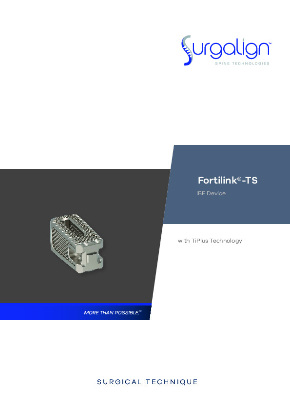 The Fortilink -TS with TiPlus by Xtant Medical is a 3D printed titanium spacer with 70% porosity for bony ingrowth.
