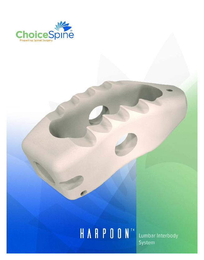 The HARPOON Curved Lumbar Interbody Spacer by Choice Spine is a PEEK Spacer for use in the TLIF procedure.