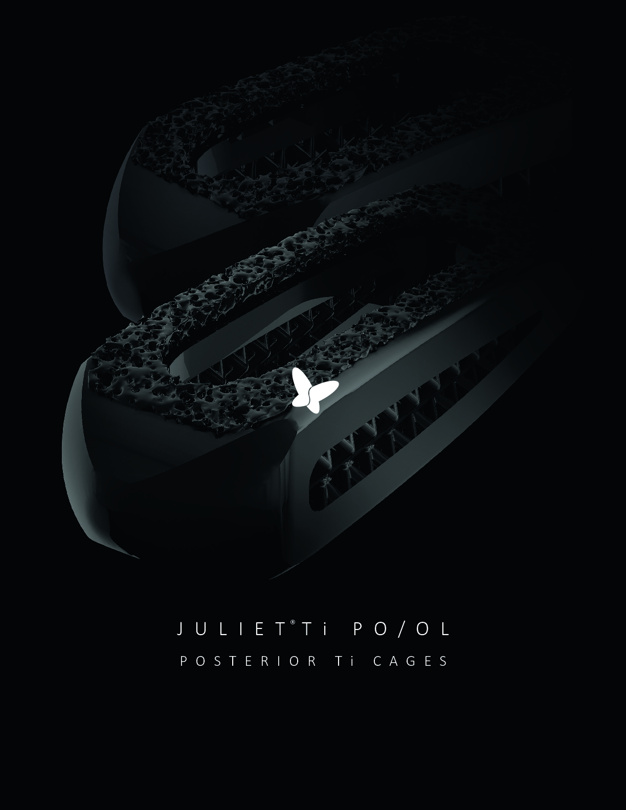 The Juliett Ti PO by Spineart is a 3D printed porous titanium lumbar interbody spacer for use singly or bilaterally in the PLIF procedure. They feature Ti-LIFE proprietary 3D printed technology to mimic cancellous bone to promote bony ingrowth and faster fusion. It features a roughened porous and lattice surface with a smooth bullet nose for endplate distraction and easy insertion.