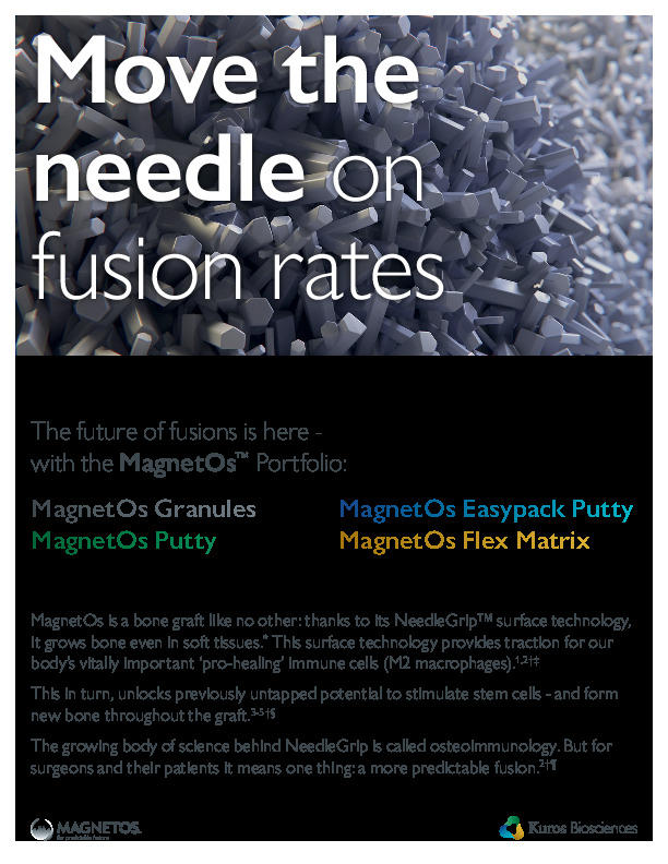 The MagnetOs family of synthetic bone void fillers by Kuros Biosciences is composed of a combination of 65-75% Beta Tri-calcium Phosphate (TCP - Ca3(PO4)2) and 25-35% Hydroxyapatite HA granules (Ca10(PO4)6 (OH)2). The unique featrure of this synthetic material is in the NeedleGrip surface technology crystaline structure of the microscopic surface that has been shown to activate the M2 macrophages important in the growth of bone. There are several formulations of the graule compounds