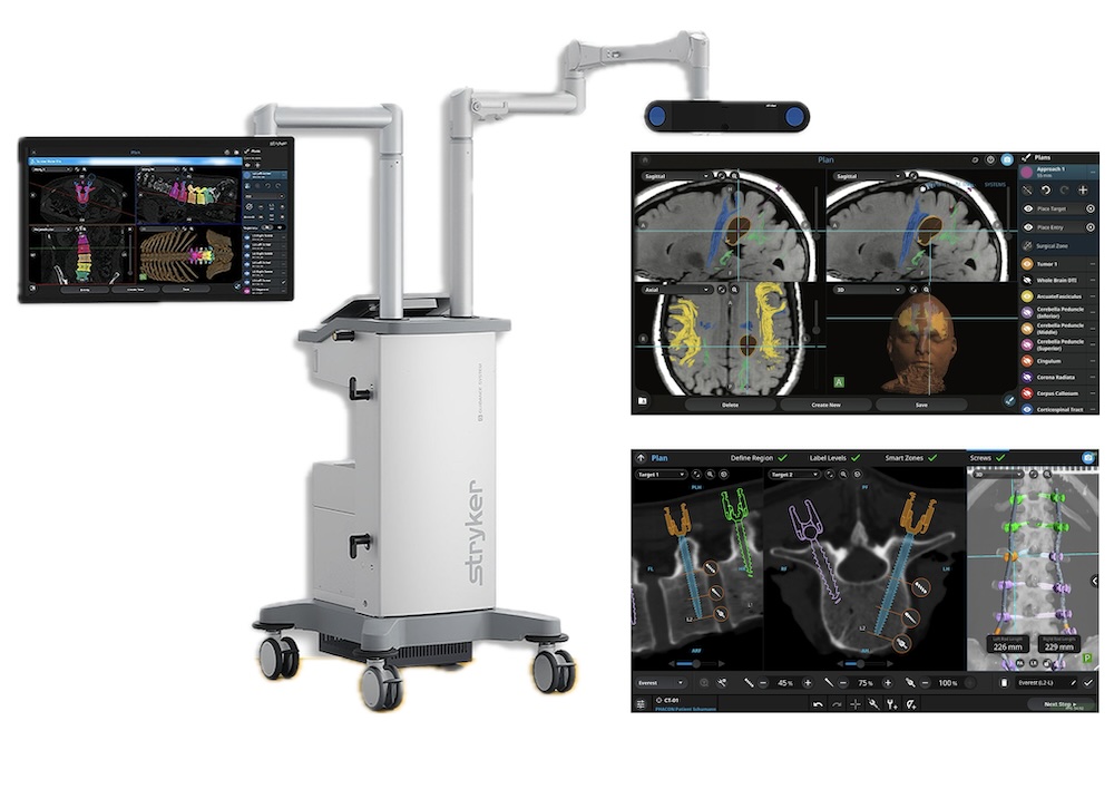 The Mako 4 surgical robotic arm is the newest iteration of the surgical navigated robot that brings with it the integration of Mako Spine. The platform integrates with the Stryker Q Guidance stereotactic navigation system. The automated system provides haptic feedback when drilling and placing screws along with an integrated easy to use surgeon interface for screw planning and navigation. The Mako allows manual movement of the robotic arm to positions that are better for patient-specific workflow.